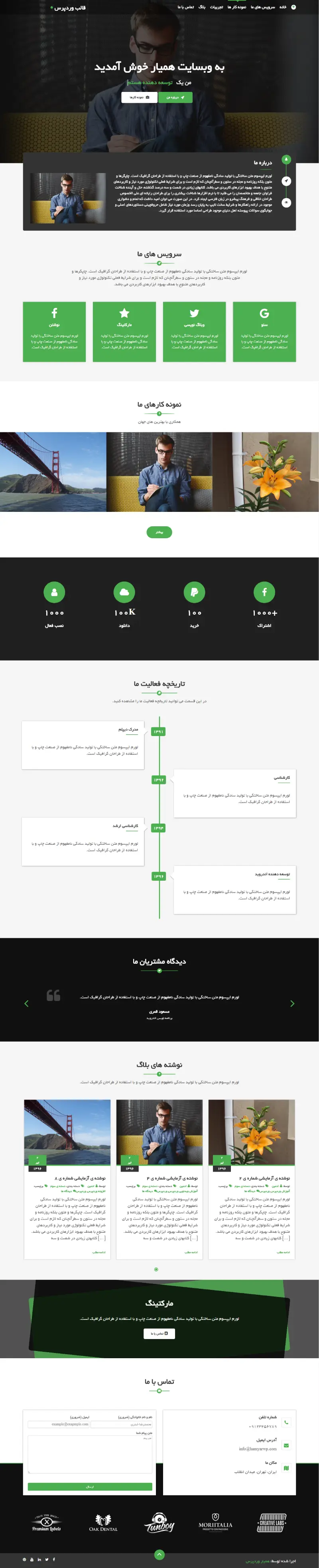قالب سایت تک صفحه ای وردپرس به قالبهایی گفته میشود که کلیه فعالیتهای موجود در یک وبسایت از قبیل ارائه و معرفی خدمات شرکت، نمایش نمونه کارها، رزومه، نمایش اعضای تیم و غیره در صفحه اصلی سایت گنجانده شده است. این گونه قالبها بیشتر برای وبسایتهای شرکتی و کسب و کارها مورد استفاده قرار میگیرد؛ قالب تک صفحه ای رایگان موردنظر خود را میتوانید از همین صفحه انتخاب و به آسانی دریافت و نصب نمایید. امیدواریم مطالعه این مقاله در شناخت بیشتر قالب سایت تک صفحه ای وردپرس به شما کمک کرده باشد. شما میتوانید سوالات و نظرات خود را از بخش دیدگاهها با ما مطرح کنید؛ همچنین اگر محتوای امروز همیار وردپرس برای شما مفید بود، خوشحال میشویم آن را با دوستان خود در شبکه های اجتماعی به اشتراک بگذارید.