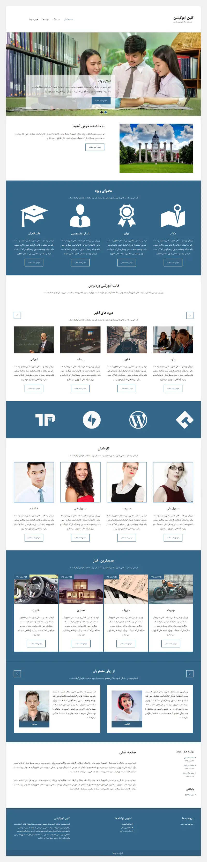 - قالب وردپرس clean education دارای بخش های متنوع برای ایجاد صفحه اصلی است برای تمامی نیاز ها