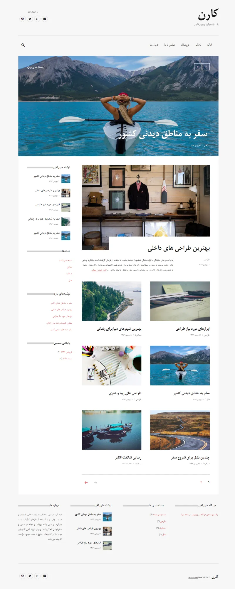 - در قالب وردپرس karen میتوانید نوشته هایی در دسته های مختلف را در صفحه اصلی نمایش دهید.