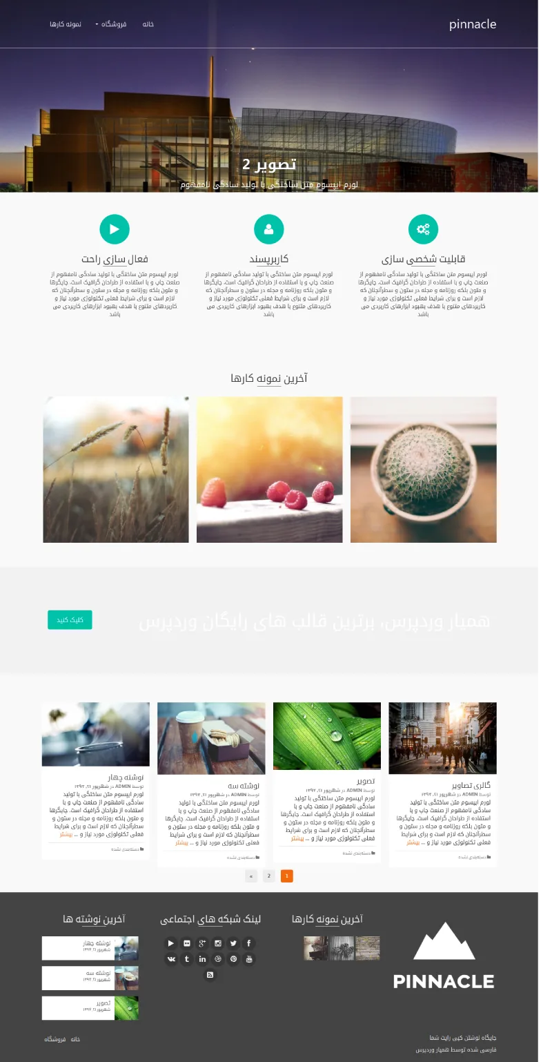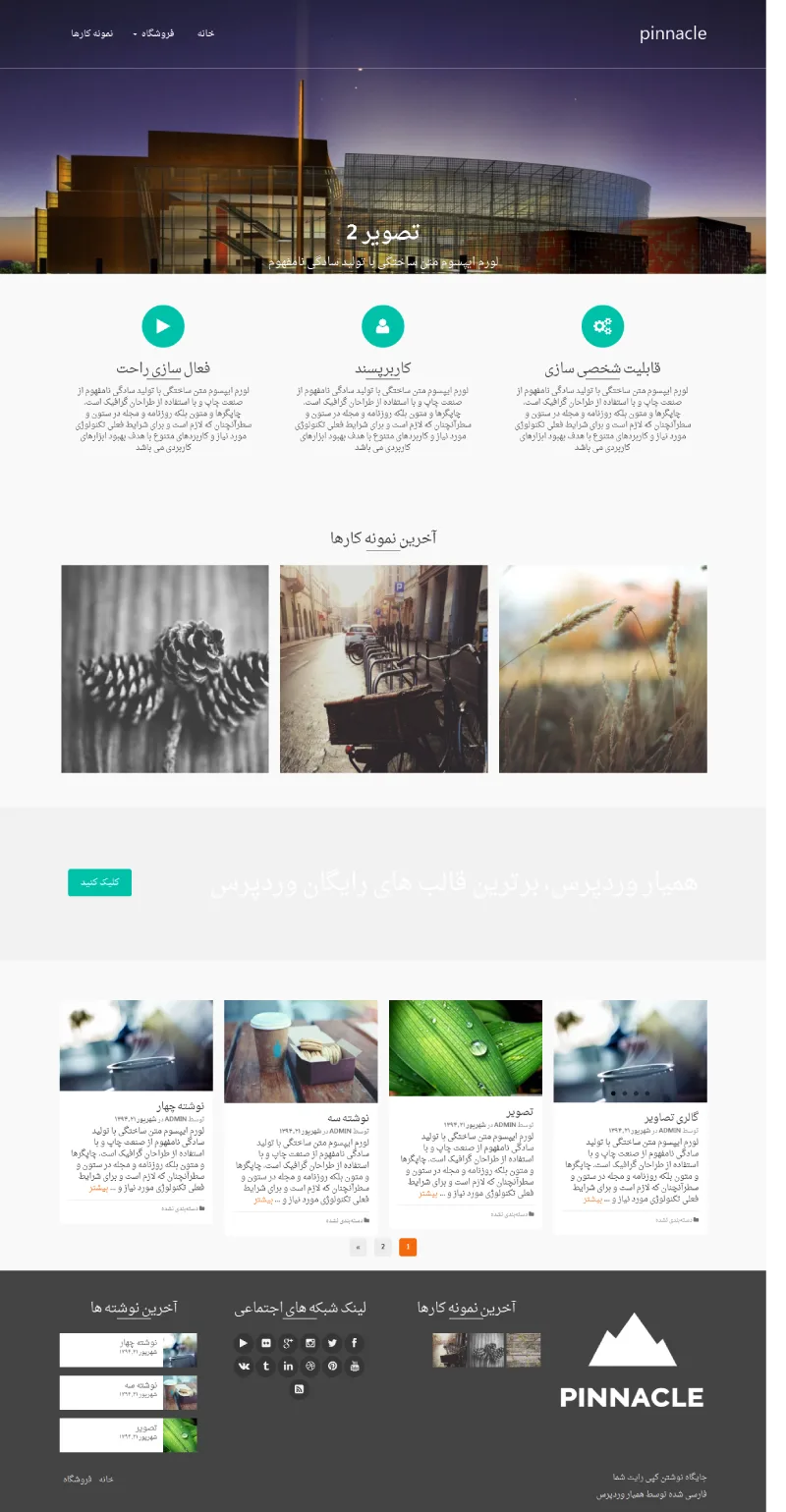 قالب های رایگان معمولا دارای تنظمیات محدود و امکان شخصی سازی کم هستند. اما قالب شرکتی Pinnacle با داشتن پنل تنظمیات قوی امکان جابجایی،تغییر رنگ و متن تقریبا هر قسمتی را به ما می دهد.همچنین این قالب امکانات و بخش ها و امکانات مورد نیاز یک سایت شرکتی پیشرفته را داشته و کاملا از ووکامرس (فروشگاه ساز وردپرس) نیز پشتیبانی می کند.