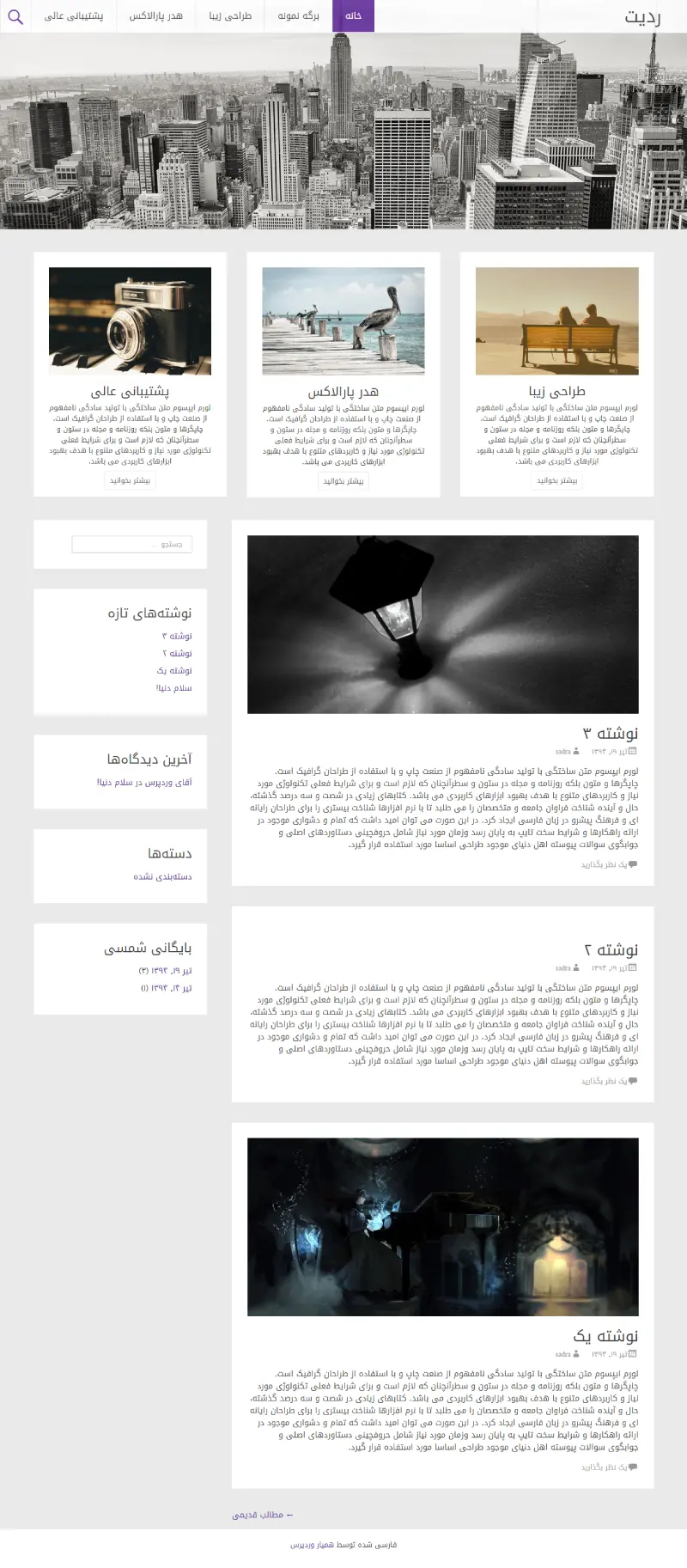 مهم ترین ویژگی های این قالب داشتن سربرگ پارالاکس بسیار زیبا است و می تواند برای کسانی که علاقه به داشتن وبلاگ شخصی دارند بسیار مناسب باشد.